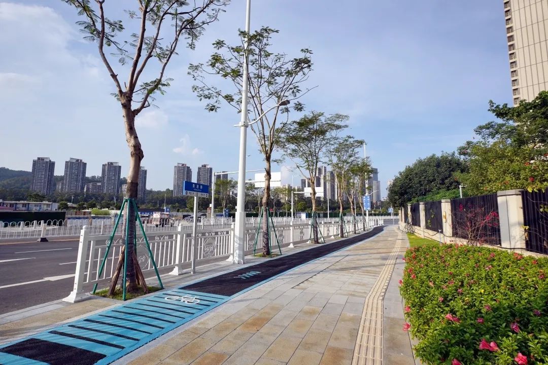 走在崭新的道路上可以看到,道路两侧新增的护栏为行人预留了安全舒适的步行空间、路口新设的交通灯和清晰的标线让通行更加有序、沿线安装的智慧路灯利用灵活多样的亮度调节功能充分兼顾了照明和节能的需求……